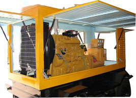 和政柴油发电机组/移动柴油发电机组设计独具创新,机动性高、重心低、制动安全、制造精良、外形美观。 和政拖车车架采用槽梁焊接成框架结构,节点选择合理、强度高、刚性好;同时装有钢板弹簧悬架结构;拖车采用高度可调节插销式牵引架,适用于各种高度牵引车;采用圆形钢管焊接直通式车轴,结构紧凑,安全可靠;车架四角设有机械式支撑装置,配备惯性行车制动、驻车制动和脱离应急制动,确保机组在各种状况下的安全;车架前端设有支撑轮,具备承受机组垂直载荷的功能的同时还具备导向功能;整车配备转向和刹车指示灯,同时装有尾灯标准插头